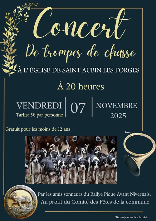 La veille de la messe, à 20h, un concert donné par les sonneurs du Rallye Pique Avant Nivernais aura lieu en l’église de Saint Aubin les Forges, au profit du Comité des Fêtes de la commune.